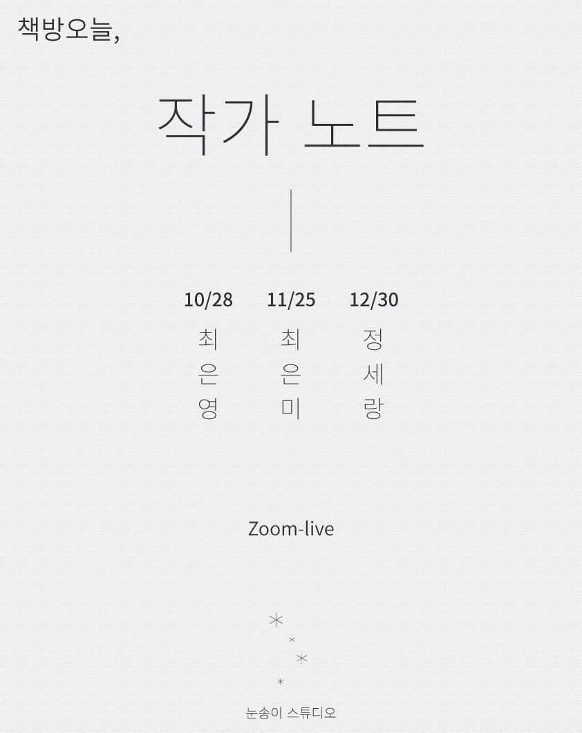 작가 노트 10: 최은영, 11: 최은미, 12: 정세랑눈송이 스튜디오/작가 노트 2021. 10. 5. 17:48