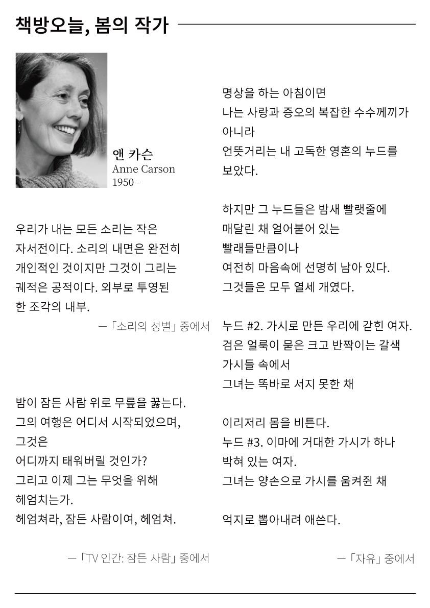 봄의 작가: 앤 카슨이달의 작가, 이 계절의 작가/2022 2022. 8. 17. 19:23